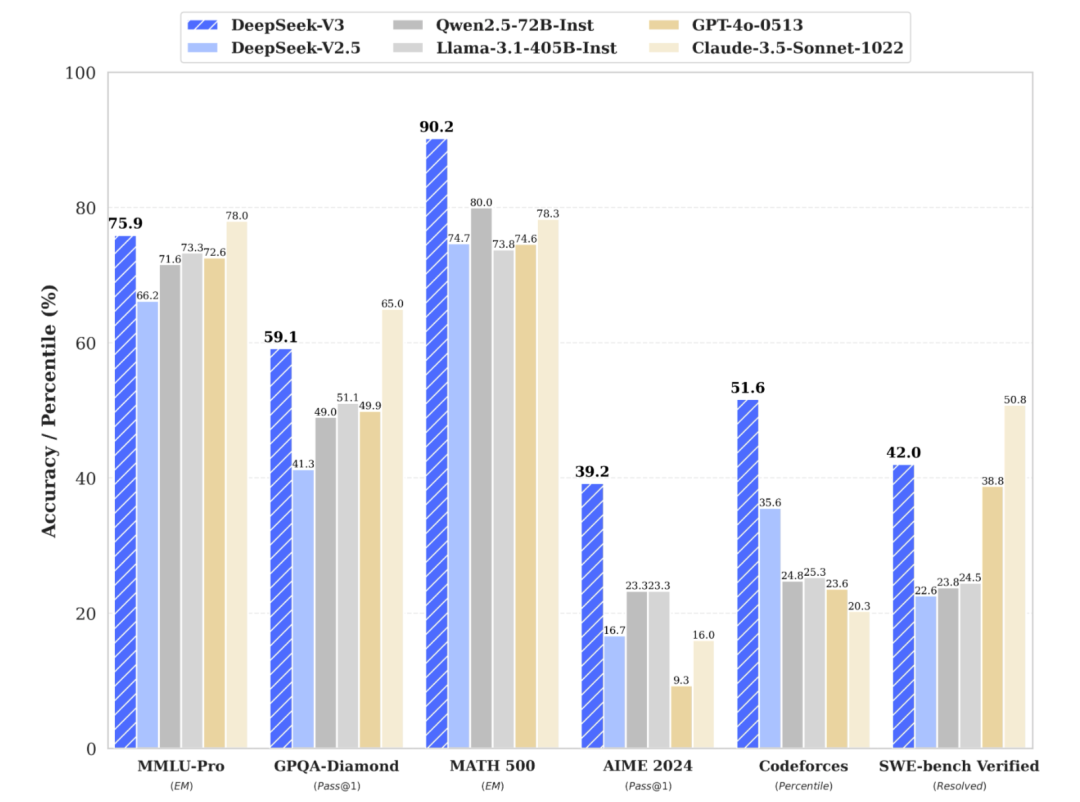DeepSeek V3仅使用了2788K H800训练时长(约合560万美元成本)就达到了接近GPT-4的水平,这一数字之低令业界震惊。更重要的是,他们采用了“AI训练AI”的创新方法:使用R1模型生成合成数据来提升V3的能力。