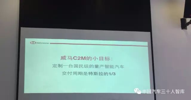 相比豪华车虽能做到外观、内饰的个性化选配,但是提车周期过长,威马C2M的小目标就是为消费者定制一台国民级的量产智能汽车,交付周期将是特斯拉的1/3。