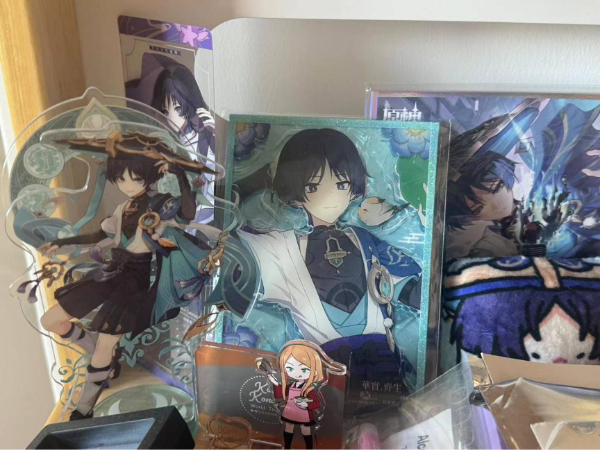「珊小妹的书桌上摆满了“谷子”(Goods)书架边挂着“痛包”」