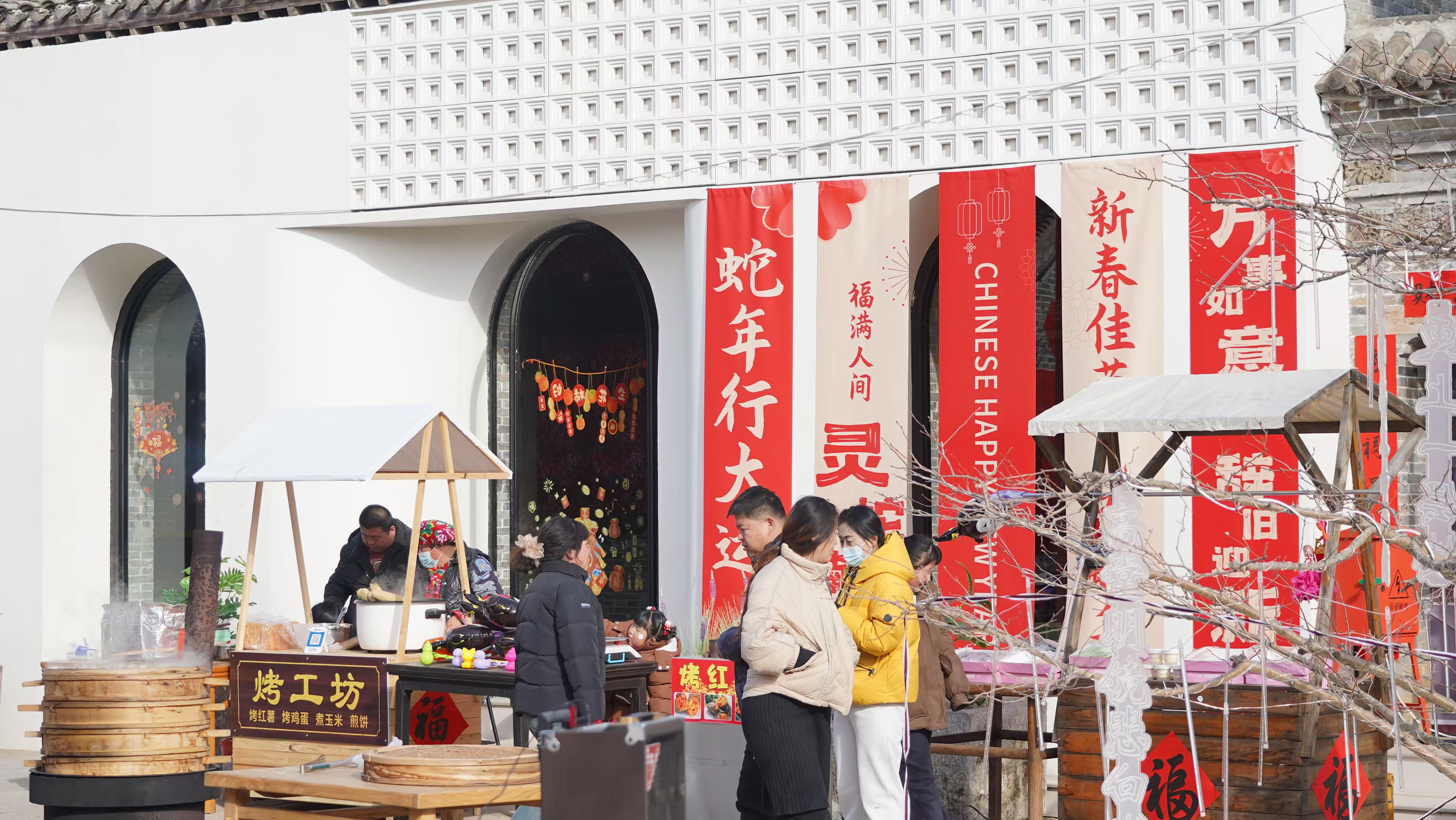 焕新亮相的山里各庄乡愁作坊街同样吸引众多游客前来游玩。走进街区,浓浓的年味便扑面而来。古色古香的建筑群和热烈浓郁的新春氛围相映成趣,饹馇盒、冰糖葫芦、烧麦、粘豆包、山楂糕等各种美食和剪纸、泥人、石头画、木雕等非遗文创琳琅满目,更有秧歌游街等民俗文化展演的喜庆热闹,让游客沉浸式感受浓浓的年味和人间烟火气。