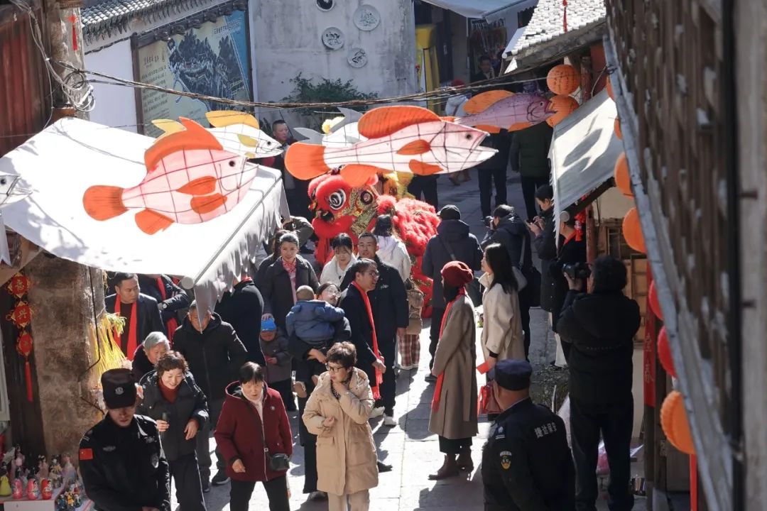 老街之上,游客熙熙攘攘,巡街演绎精彩不间断,姑娘们手持鱼灯起舞翩跹,共生新年向往。萨卡斯优雅独奏,引人流连欣赏,贩糖孩童沿街叫卖,好食一刻就是自在。