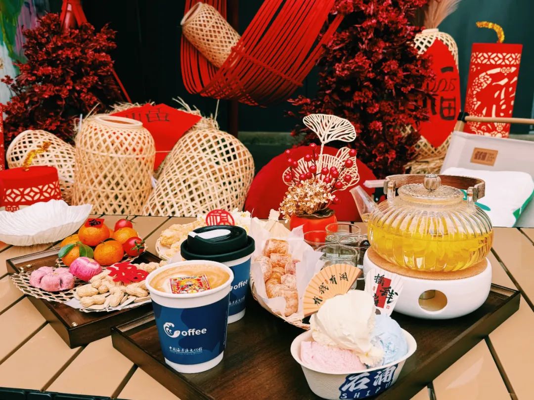 游客们在古城游客中心领取集福手册,前往8个集福点位,鲜笃笃推出了“如意福财茶”套餐,不管你信不信,我先喝先发财(记得上抖音买套餐更划算哦)