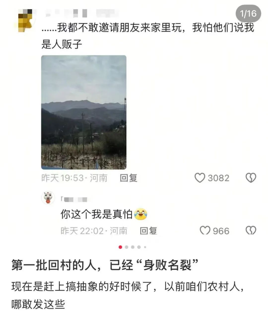 这种心理认知也极大压缩了创作空间。不乏农村网红贬抑身体来博取眼球,极力呈现乡村落后、扭曲、令人啼笑皆非的一面。那些朴素的、接地气的生活向农村短视频创作者却只能充当分母,一起承担负面评价、被劣币驱逐良币。