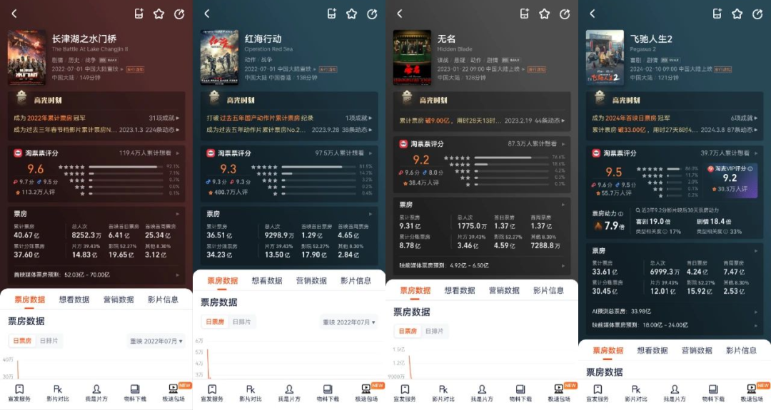 早期的《澳门风云》系列,2018年的《红海行动》逆袭成为当年春节档冠军,2022年《长津湖之水门桥》拿到了40.67亿票房成绩,2023年《无名》顶着程耳式文艺强调也拿到了近10亿元的票房成绩,2024年参与出品的《飞驰人生2》从口碑到单日票房陆续逆袭《热辣滚烫》……