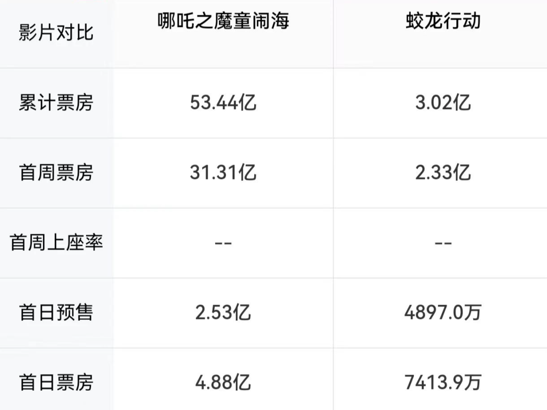 如果把《蛟龙行动》视作《红海行动2》,《红海行动》与《哪吒之魔童降世》此前票房分别为36.52亿和50.35亿,为何两部续集的票房相差如此十万八千里?