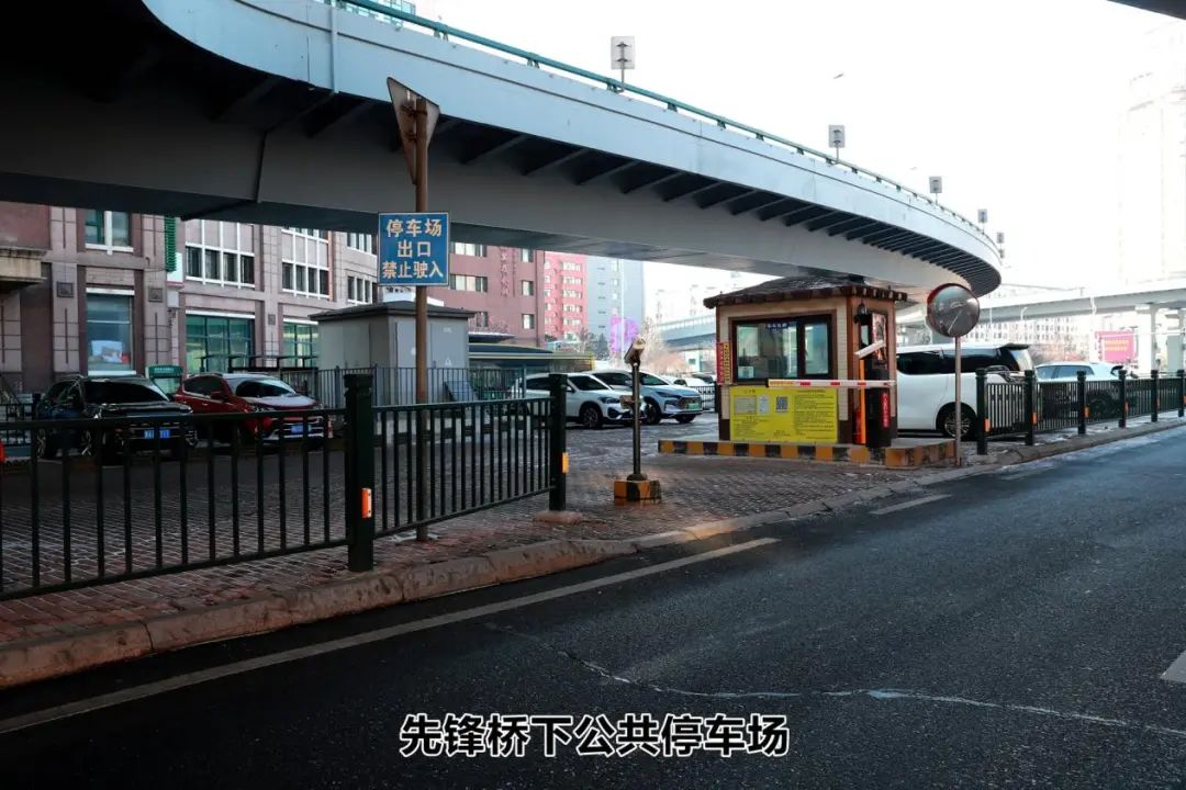 经一曼街在哈尔滨开放大学旁的开原街左转,进入霁虹广场公共停车场停放。