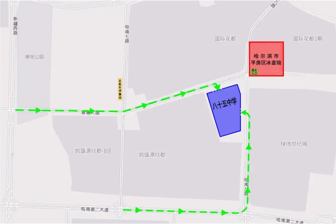 位于平房区南城一小院内,设有出租车、网约车乘降站,观众车辆可在第八十五中学校院内停放。