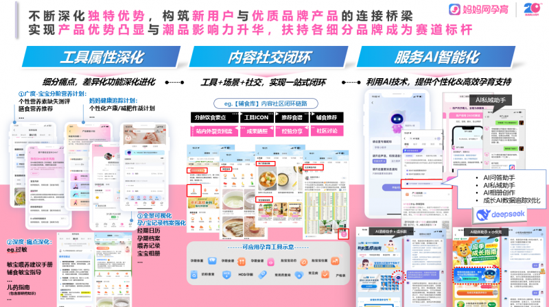 据悉,妈妈网深耕母婴领域多年,拥有庞大的用户群体和丰富的育儿工具、知识与经验。DeepSeek作为人工智能领域的佼佼者,在自然语言处理、机器学习等方面拥有领先的技术优势。妈妈网全面接入DeepSeek,将DeepSeek先进的AI技术与妈妈网丰富的育儿资源深度融合,可打造更智能、更精准的育儿服务平台,为全球父母提供一站式解决方案。