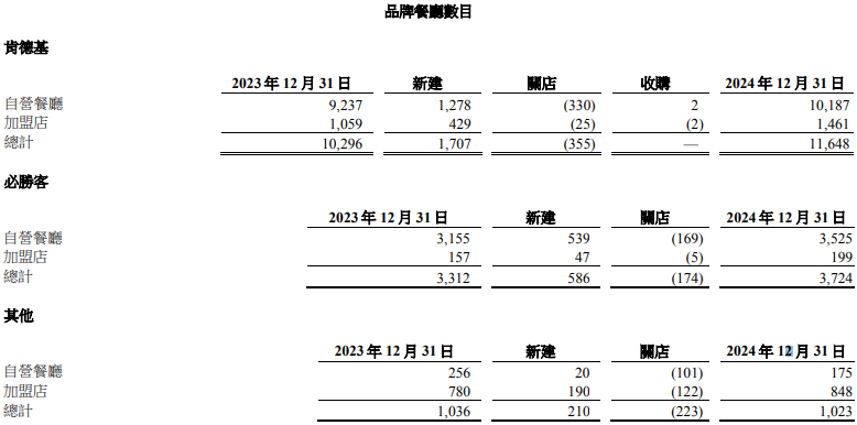 2024年,百胜中国的系统销售额同比增长5%,主要得益于7%的净新增门店贡献。该公司去年门店总数同比增长12%至16395家,净新增门店1751家,其中加盟店有512家,约占净新增门店总数的29%。