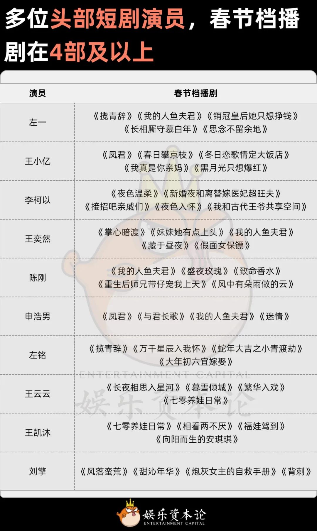这个春节档,头部短剧演员成为最热的资源,两周里集中上四五部短剧的演员不在少数。