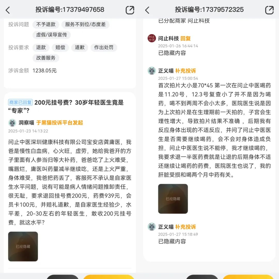 对此,在社交媒体小红书上,有网友表示,对于重病而言,看中医可能只是一种安慰剂,中医更适合养生、培养健康的生活方式。此外,在黑猫投诉平台上,也有患者反映,在问止中医问诊后服药导致肝功能受损,以及有患者对医生资质存疑等问题。