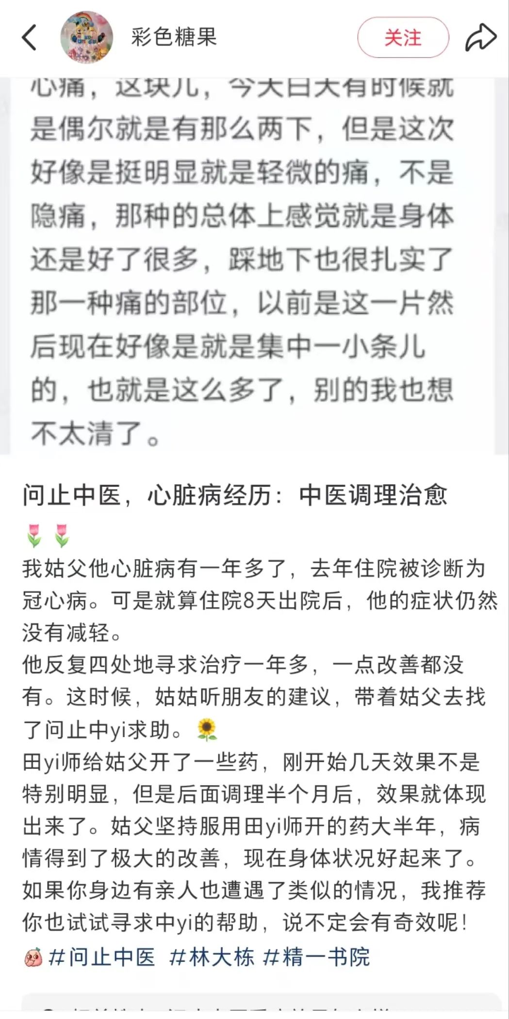 不过,也有网友认可中医的治疗方式,并表示,家人因冠心病久治无效,后经问止中医治疗,半个月后症状明显缓解。