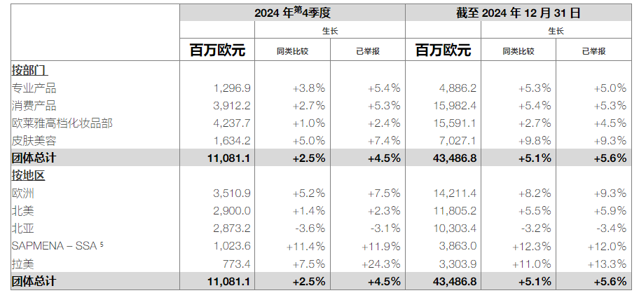 截自欧莱雅集团财报