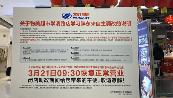2月6日,物美集团发布《关于物美学清路店学习胖东来自主调改的说明》公告,北京物美第一家向胖东来学习的自主调改门店确定为学清路店,该店将于2月10日起闭店调改,并将于3月21日上午9点半恢复正常营业。