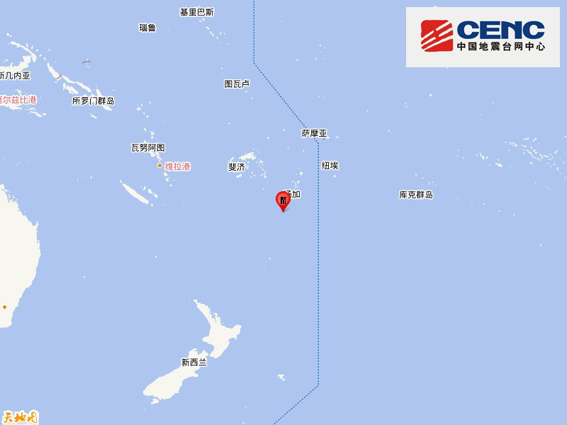 斐济群岛以南发生5.9级地震,震源深度100千米