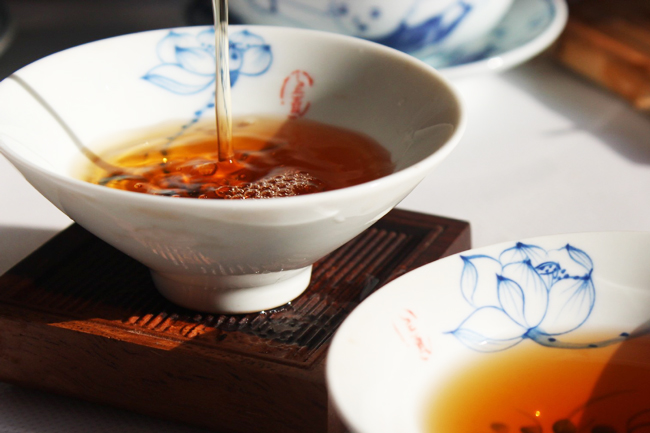 品质好的熟茶,其干茶色泽褐红或深栗色,俗称“猪肝红”,汤色红浓透明,滋味醇厚,顺滑甘甜,无霉味,也称人工发酵普洱茶,或现代工艺普洱茶。熟茶具有温和的茶性,茶水如丝般滑爽柔顺,醇香浓郁,非常适合日常饮用。