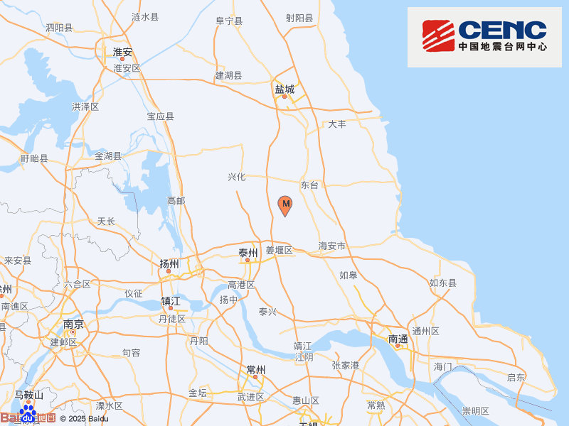 江苏泰州市兴化市发生3.0级地震,震源深度8千米