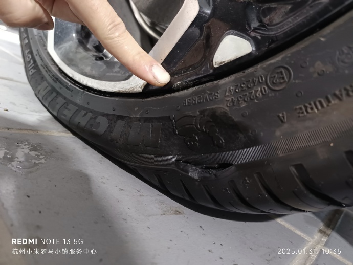 2月6日,门店和工程团队去往事故现场实地考察,再结合车辆受损部位的痕迹,推断用户车辆在该路况下严重超速行驶,同时车辆受到路坑边缘冲击下,轮胎异常受力后爆胎,而后冲击力直接传递到轮圈、摆臂上,导致摆臂受力过载后断裂,并非个别谣传断轴。最终,车辆右后悬架损坏,空气弹簧滑出,车辆继续滑行,摆臂以及减振器等受到磨损。车辆检测结果为事故的外力受损,非产品质量问题。