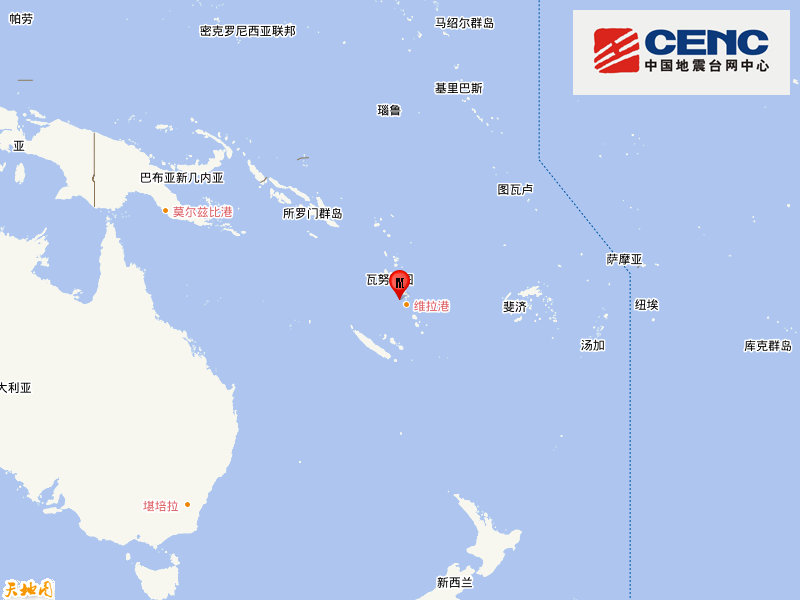 瓦努阿图群岛发生5.9级地震,震源深度15千米