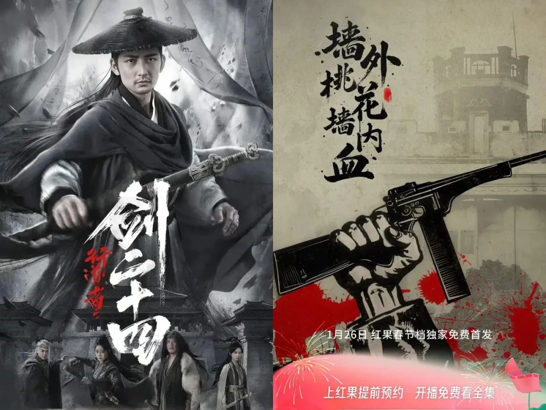 红果短剧推出的《行道者之剑二十四》首次采用武侠主题,《重回1944:我在东北打鬼子》是红色题材重点项目,《墙外桃花墙内血》则是短剧中难得一见的谍战题材。