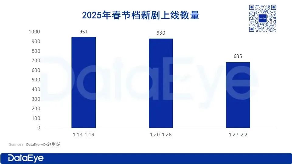 今年春节档,各平台都卯足了劲加大储备。DataEye-ADXray数据显示,整个春节档周期,有近2000部短剧上线,远超去年同期的数百部。