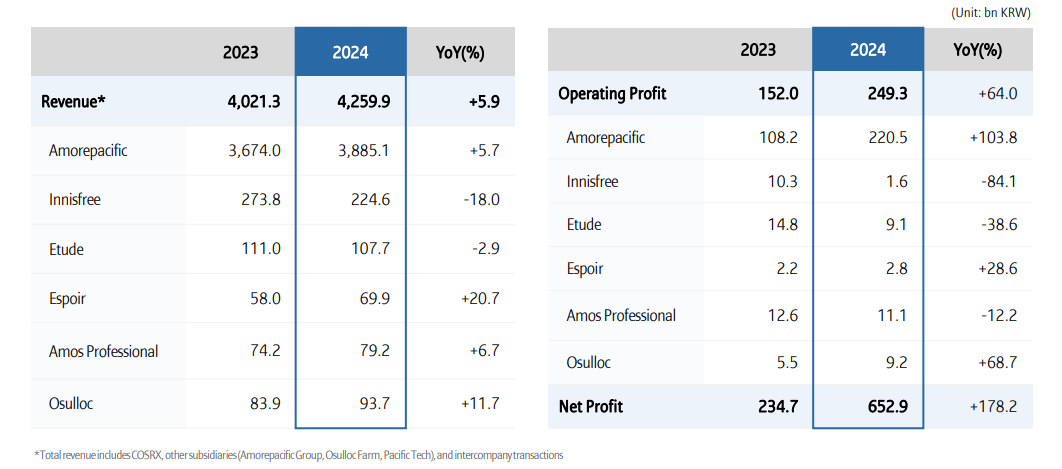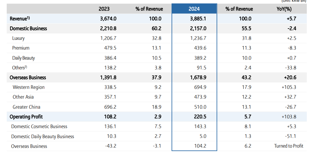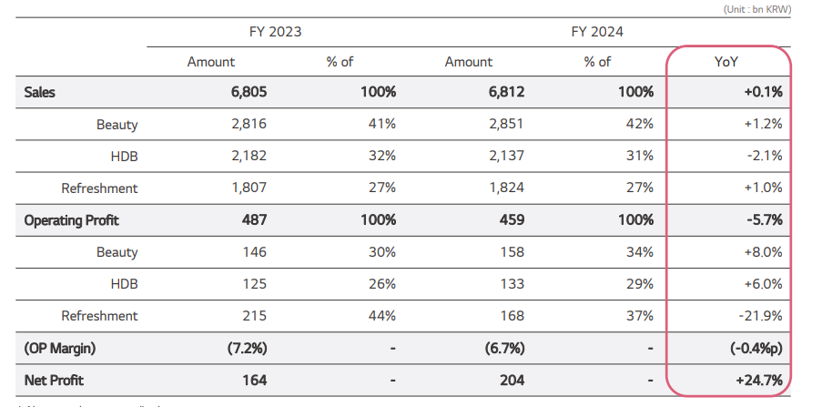 2024年,LG生活健康与爱茉莉太平洋均实现销售额正增长,但利润实现路径却差异明显。