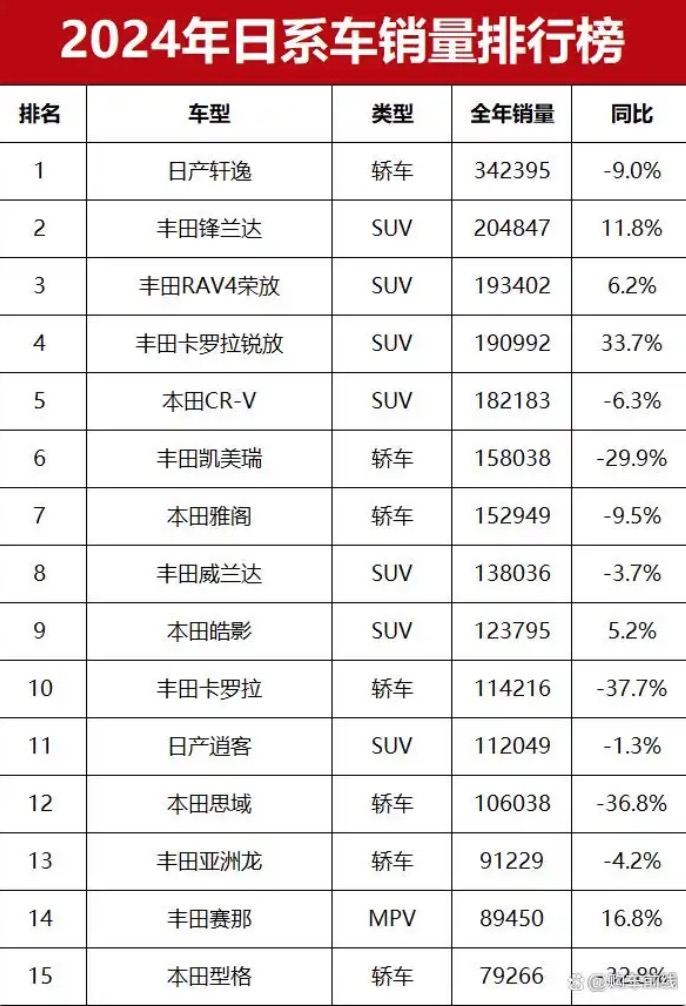 图/2024日系车销量排行榜