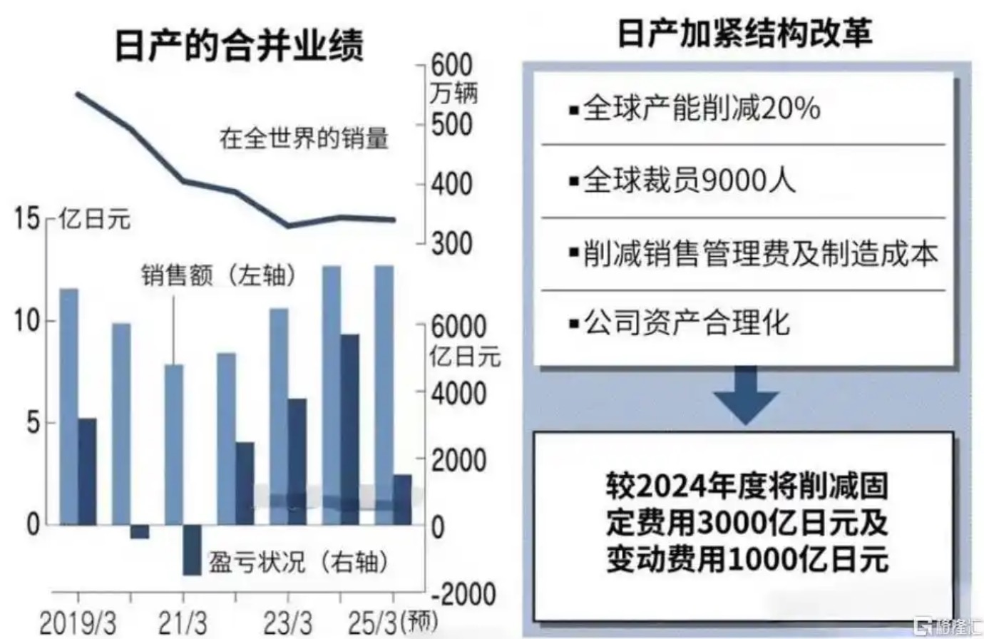 同年11月,日产宣布将全球裁员9000人,削减产能20%,并出售10%的三菱股份换取686亿日元现金。