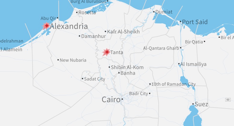 第一起爆炸发生在坦塔市一所科普特基督(Coptic Christian)教堂,已造成至少27人死亡,另有约78人受伤。其中不乏神职人员和唱诗班成员。