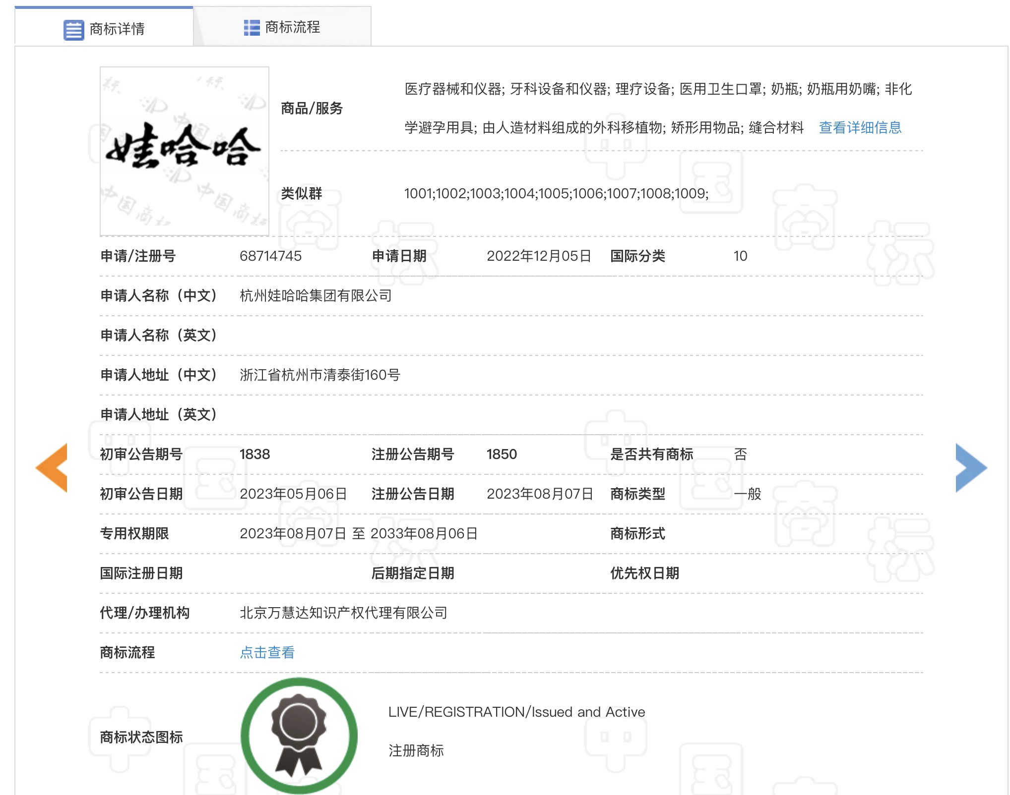 2月11日,界面新闻通过国家知识产权局商标局官网发现,杭州娃哈哈集团有限公司正在对“娃哈哈”商标进行转让,目前“申请收文”环节已结束,申请日期为2025年1月21日,而商标的受让主体未显示。