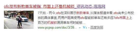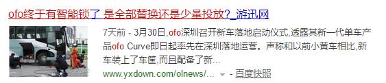 3月30日,ofo带着此前在北京发布的新款车型Cruve在深圳召开落地仪式,科技媒体泡泡网当天就发文质疑“市面还是机械锁”。