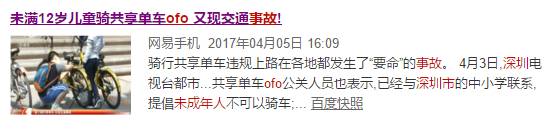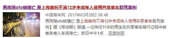 3月26日,上海出现了首例不满12岁未成年人在ofo骑行过程中被客车卷入车底身亡,案件发生后ofo第一时间回应称“将研究一套有效的防范机制避免类似悲剧”。