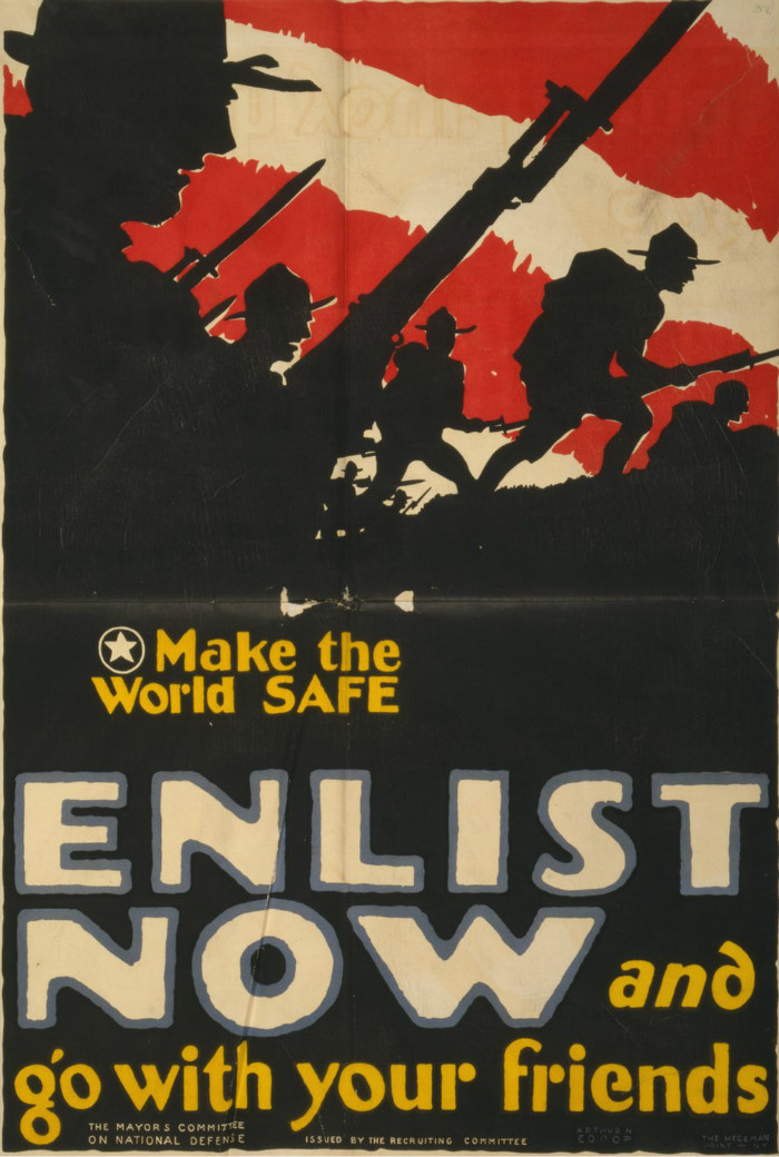 让世界重归安全——请此刻就和朋友一起入伍从军。设计者为Arthur N Edrop。