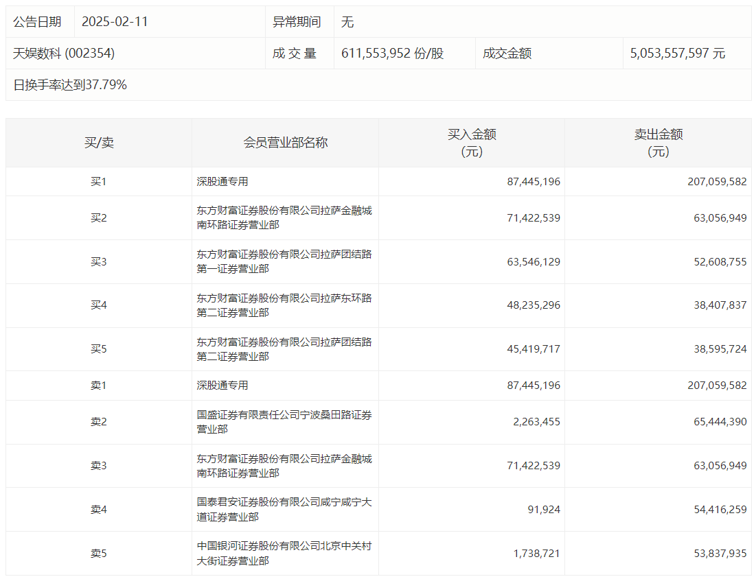 具体来看,知名游资现身龙虎榜,深股通专用、东方财富证券拉萨金融城南环路证券营业部分别买入8744.52万元、7142.25万元;深股通专用、宁波桑田路(国盛证券宁波桑田路证券营业部)分别卖出2.07亿元、6544.44万元。