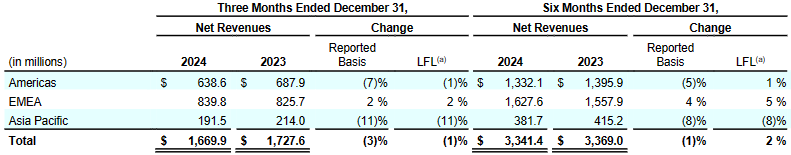 EMEA地区Q2净收入为8.398亿美元(约合人民币61.3亿元),按报告增长2%,可比增长2%。