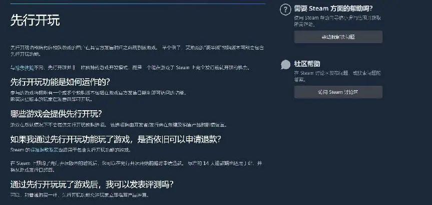 根据Steamworks的文献库信息,“先行开玩”是一种区别于“抢先体验(EA)”的预购激励措施,让预购游戏“豪华版”程序包的顾客比预购“标准版”(最基础的)程序包的顾客更早玩到游戏。