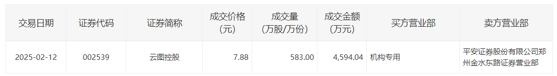 云图控股今日大宗交易成交583万股,成交额4594.04万元