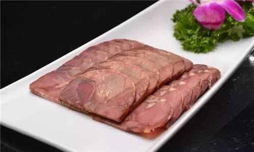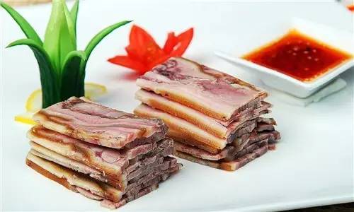 甘肃菜喜烹牛羊肉,平凉红牛便是肉质来源之一,取红牛牛腱、牛腩、牛筋、牛腱子肉等部位,配老汤、大料、草果等卤制,最好用细绳子捆住肉,煮到九成熟就可以了,菜品肉香,耐嚼,回味无穷。