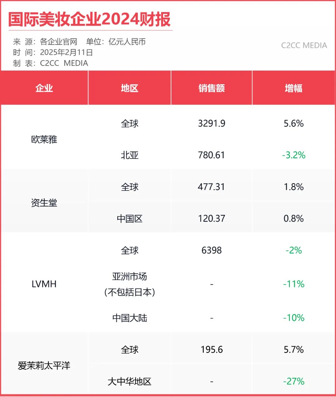 一边是,多个国际美妆集团相继发布2024四季度和年度财报,称中国市场增速有所下滑。