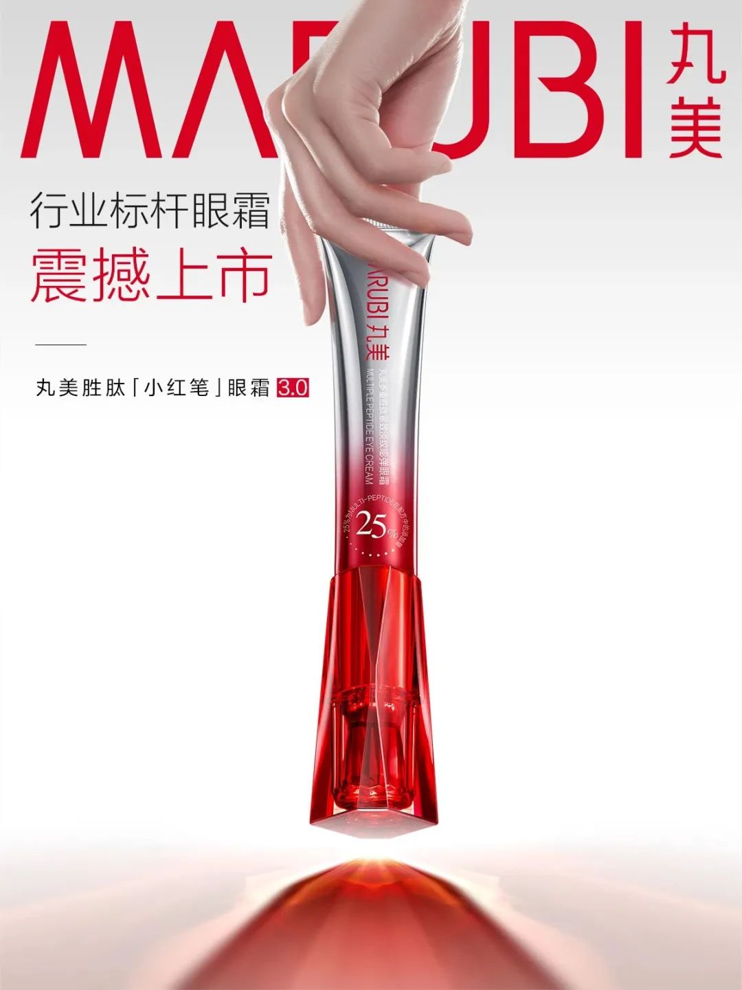 2024年8月,丸美胜肽小红笔眼霜的3.0版首次运用“AI 胜肽智选技术”进行眼纹定制胜肽的靶向筛选,实现25%浓度的多重胜肽科学配比。