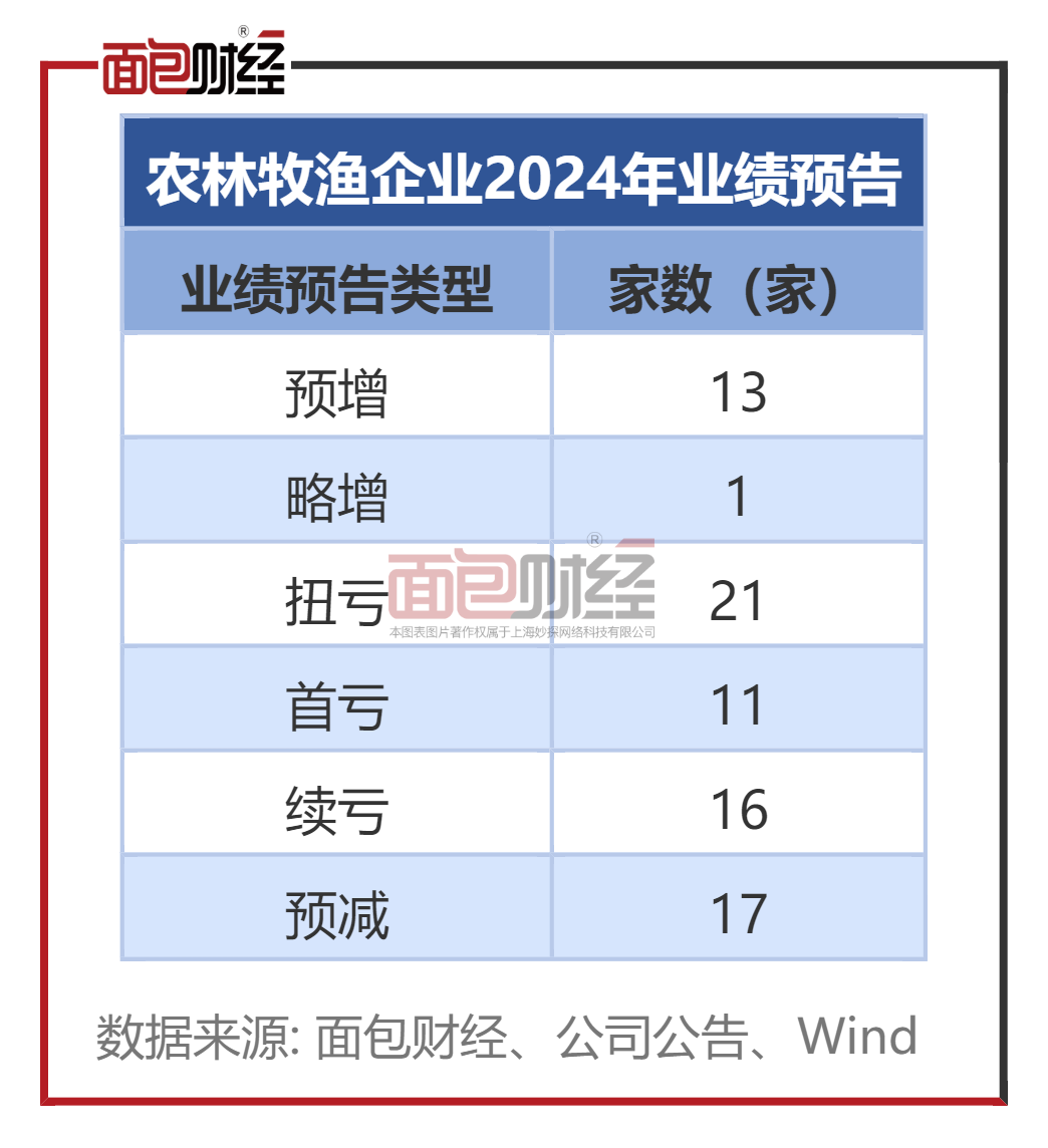 根据申万一级行业分类,截至2025年2月12日,共有79家农林牧渔行业A股上市公司披露2024年业绩预告。