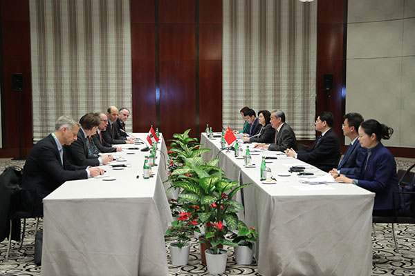 当地时间2025年2月15日晚,中共中央政治局委员、外交部长王毅在出席慕尼黑安全会议期间应约会见奥地利临时政府总理兼外长沙伦贝格。