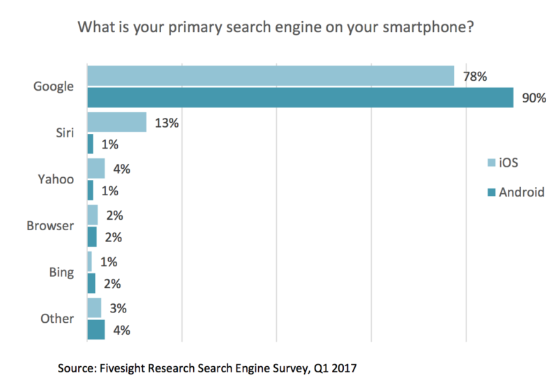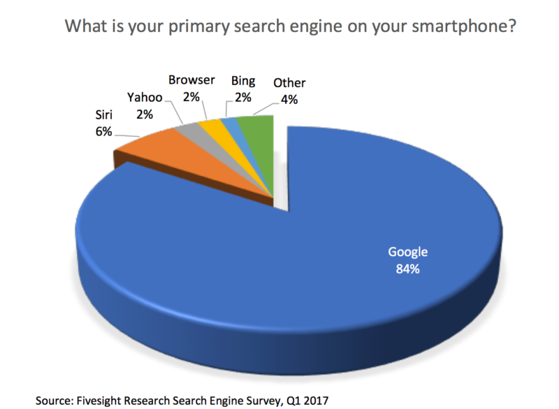 【私募通(微信ID:pedata)近日获悉,科技市场研究公司Fivesight Research今天发布了2017年第一季度《美国用户搜索偏好报告》,发现苹果Siri成为仅次于谷歌之后的第二大移动“搜索引擎”。私募通根据外媒新闻进行了编译,新闻如下。】