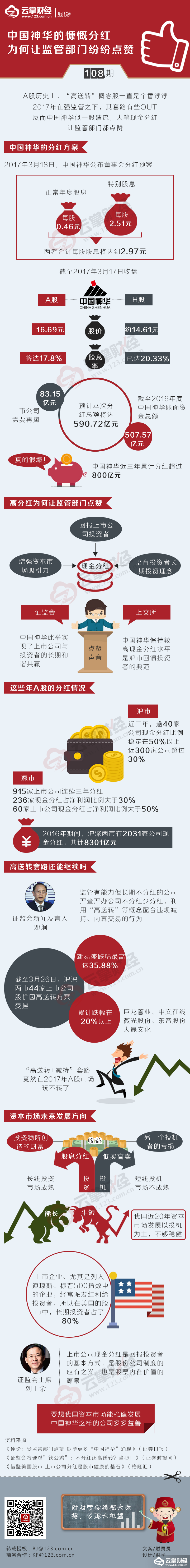 2017年在强监管之下,“高送转”套路有些OUT,反而中国神华似一股清流,大笔现金分红,让监管部门都点赞!