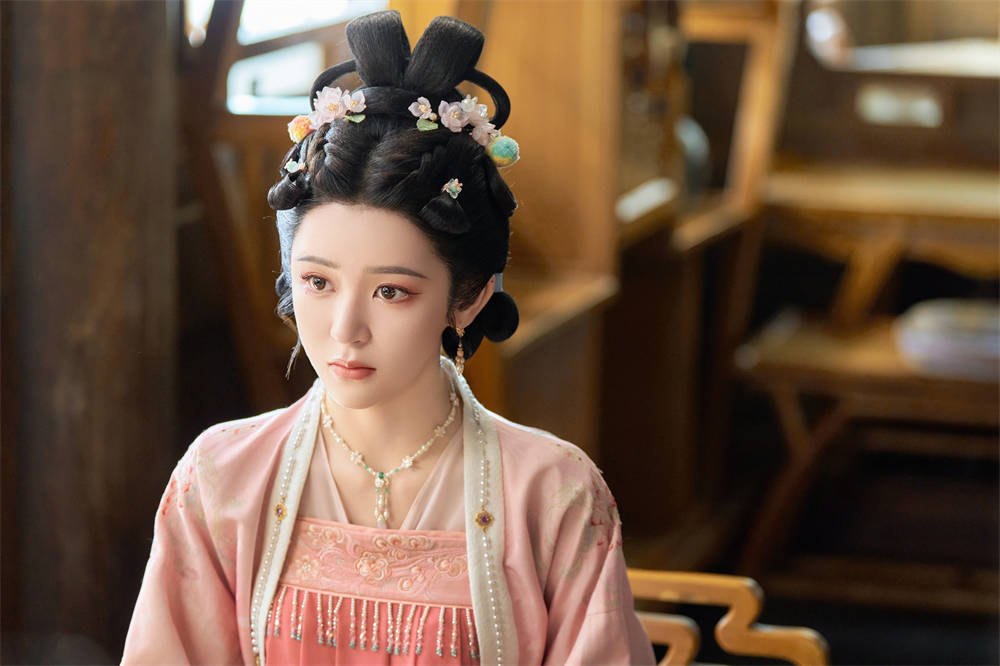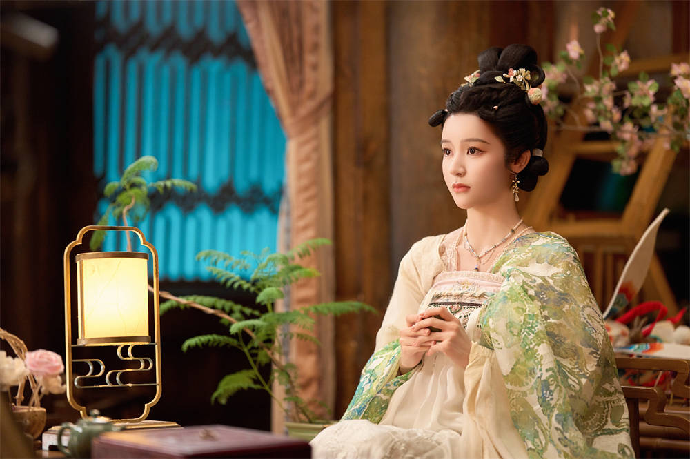 剧中,饶嘉迪饰演的刘棠公主甫一登场便以“鹅黄衫裙+唐代上梳髻”的造型惊艳观众。垂眸时自带楚楚可怜的破碎感,将原著中低调社恐的公主形象完美还原。尤其是一段与男二的对手戏,她为替闺蜜解围,谎称对方是“面首”,表面强装镇定,实则指尖颤抖、眼神躲闪,将小公主的纯真与胆怯演绎得淋漓尽致。