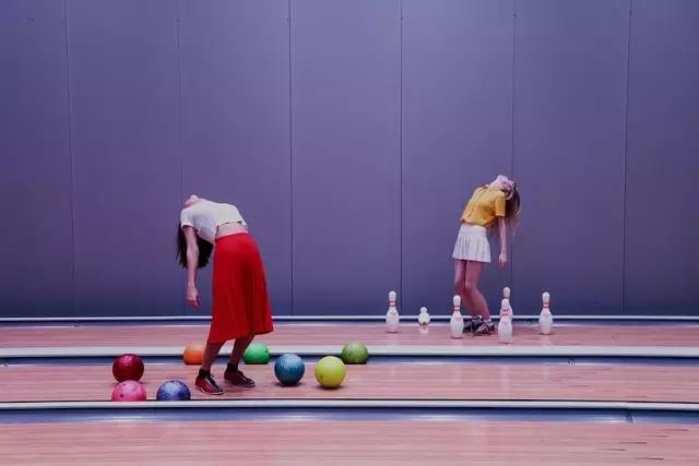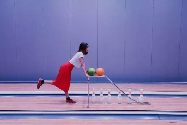 谁说来保龄球馆一定要打球,有人就是来弯曲这柔软的腰肢,这红红黄黄的少女要在动中取静,仰天思考呢。