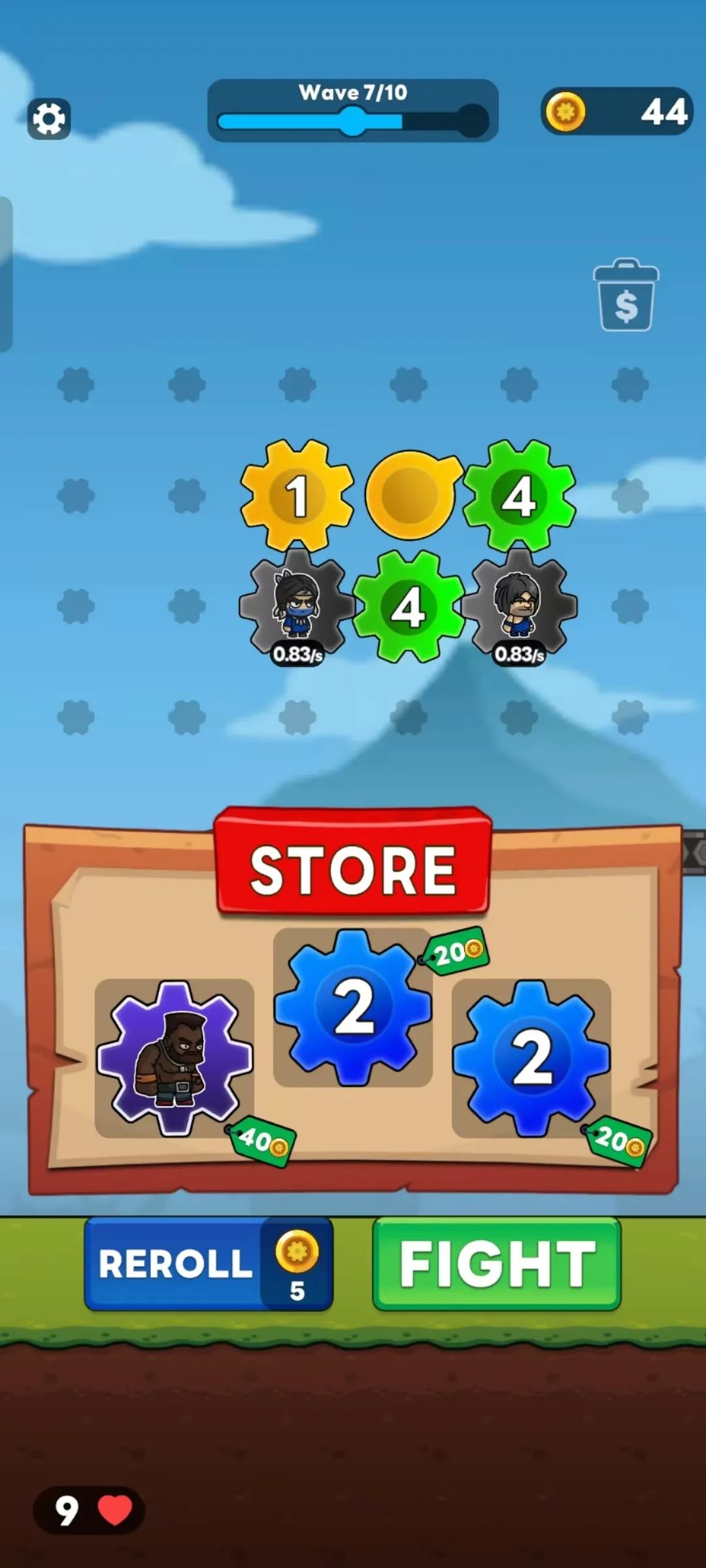 直到玩家部署好之后就可以进入自动出兵-战斗环节,消灭敌人就获得一定数量的资源金币。关卡设定上,每个大关卡会有10波敌人的进攻,而每次成功抵御敌人进攻之后就可以购买刷新的齿轮单位,增加对局内的战斗部署。