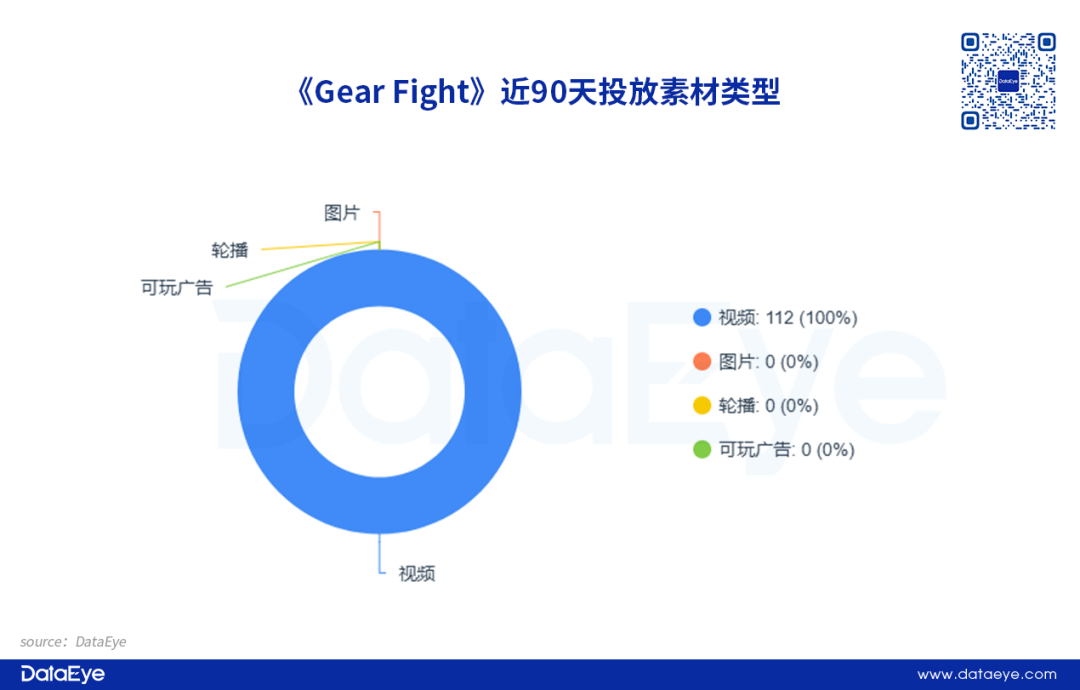 DataEye-ADX海外版数据显示,《Gear Fight》目前投放的所有测试素材类型均为视频素材,占比达100%。