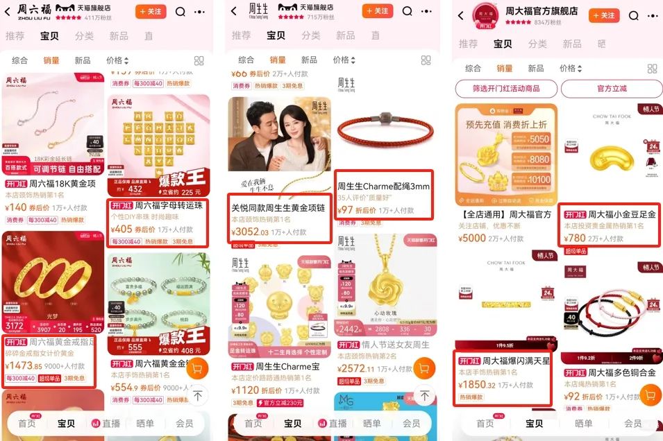 黄金品牌深谙爆品引流、主力产品赚利润的经营之道 图源:天猫