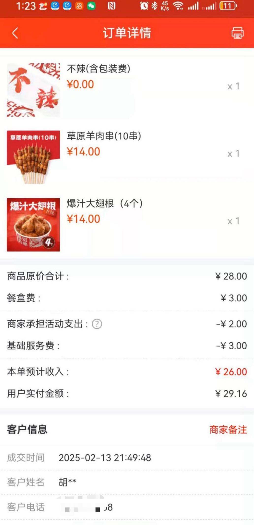 该商家也同样入驻京东外卖,在免除5%的佣金费率后,一份售价29.17元的外卖,商家实际到手26元,综合费率10.28%,若加上免去的5%佣金费率计算,综合费率15.28%,目前低于美团。